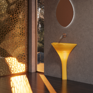 Color: Matt Yellow Material: Cast Stone Sink Type: Freestanding Basin Shape : Art Installation Type: Freestanding Finish Type: Matt Drainer: Not included Tap: Not Included Installation: Not Included Size : 450x450x900mm